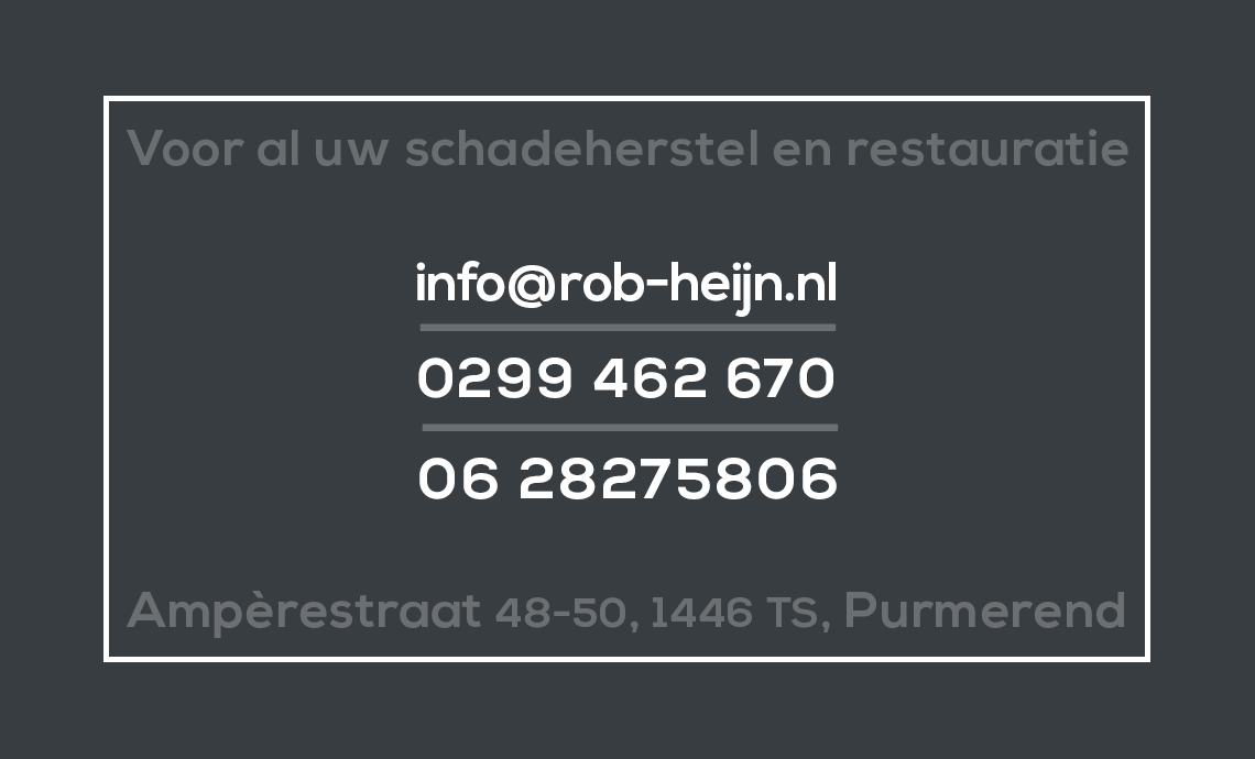 U heeft schade aan uw auto? Bij Rob Heijn Autoschade kunt u altijd terecht. Wij maken een betrouwbare schadetaxatie waarna u zelf beslist of u tot herstel overgaat.